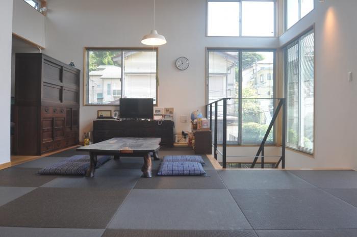 2階畳リビング:床座生活の高天井空間