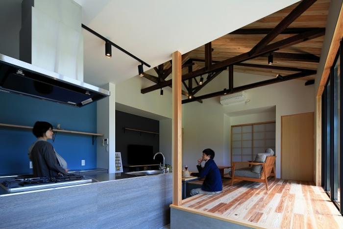 元々は細かく仕切られていた部屋の間仕切りをなるべくなくし、開放的な空間としました。また一部天井を撤去し既存の梁を見せることで、リノベーションならではの時の流れを感じさせる雰囲気づくりを目指しました。
