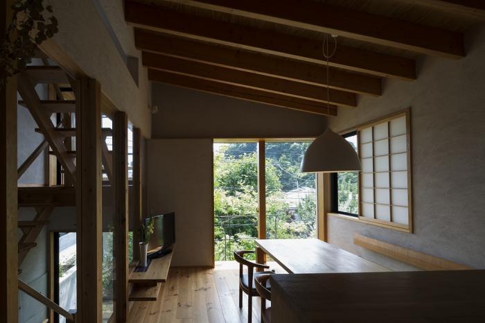 既存建物と既存擁壁を解体した上で擁壁を兼ねた鉄筋コンクリート造の地下空間をつくり、その上に柔らかな木造の空間が出来上がりました。