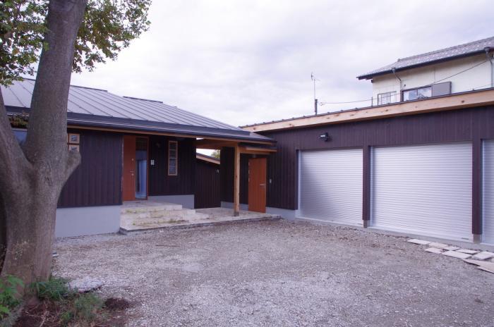 ガレージと主屋は構造的には別棟ですが、雨に濡れないように軒を重ねています。