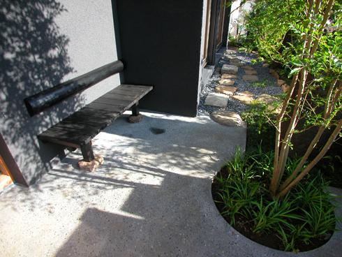 手前は待合い。路地の石は旧家屋の石を再利用しました。