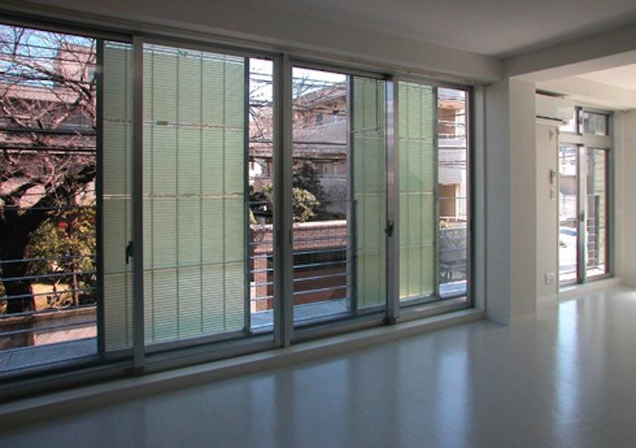 FRP製ルーバースクリーンで街と住戸との間にソフトな関係をつくる。