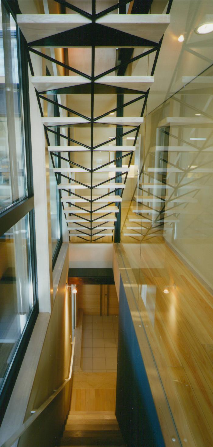パティオ上部の光を風を取り込む階段