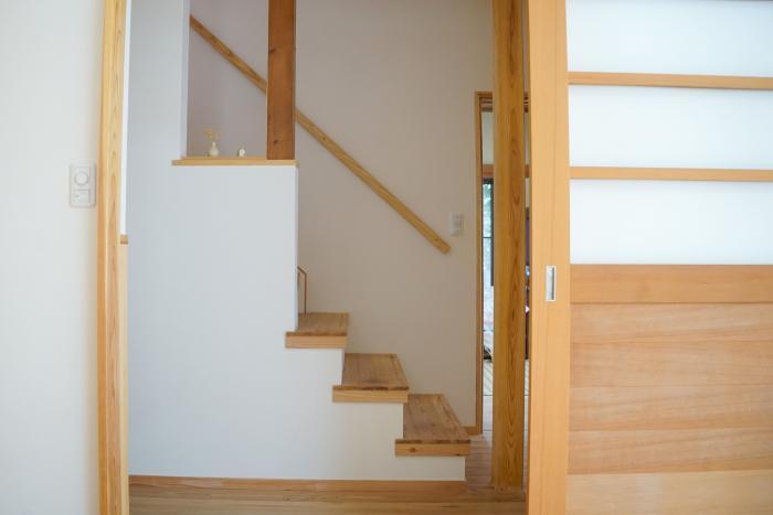 リビングから廊下へ欄間を明けたり、ガラス戸を使用したり、階段から光が落ちるようにしたり、