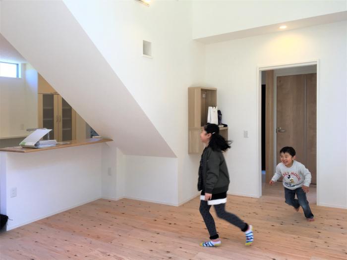 家全体に回遊性をもたせお子様が内も外も元気に走り回り