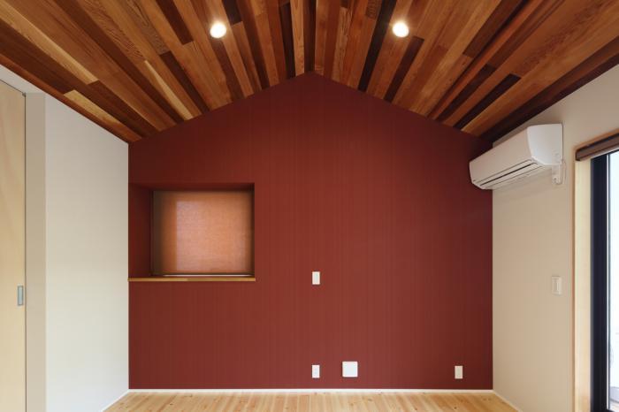 室内にも庭の緑を取り込み、開放性と明るさを確保しようと考え、居間に吹き抜けとFIXを設けています。外部との繋がりと同時に、1階と2階とを緩やかに繋いでいます。手触りが良く、視覚的にも優しい木材を建物内外に多く利用したことで、柔らかな印象を持つ家となりました。