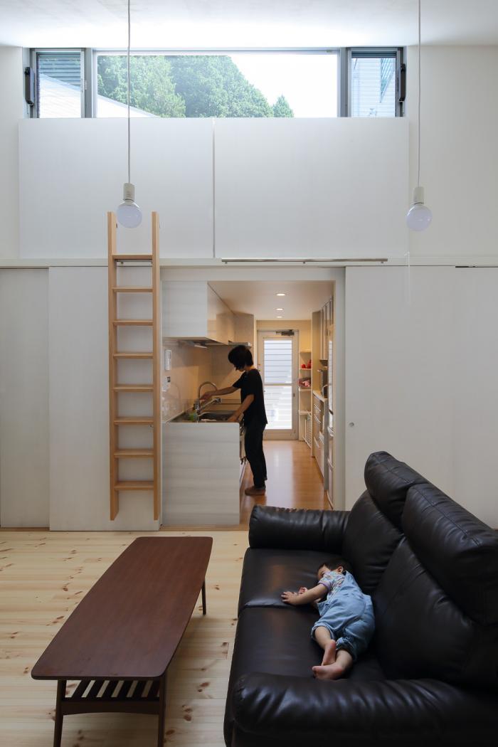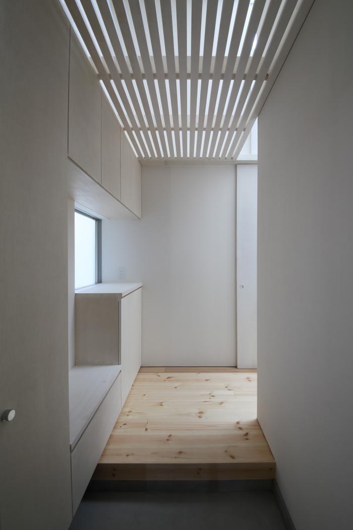 格子で覆われていて、道路とリビングの間の緩衝帯となっている。一部は、洗濯物干し場として利用されている。