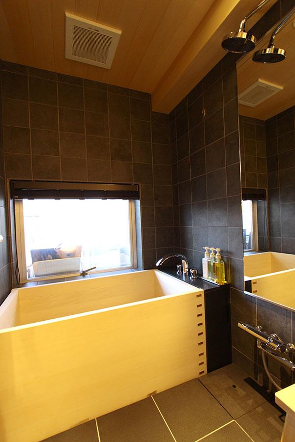 機能的でゆったりとした間取りは、ファミリーやカップルなど、幅広いグループサイズに最適化を図っています。全室に檜の浴槽を完備。体をゆったり伸ばしてリラックスしたり、気軽に足湯に浸かったりと、心と体をリフレッシュすることのできる環境も構築しています。