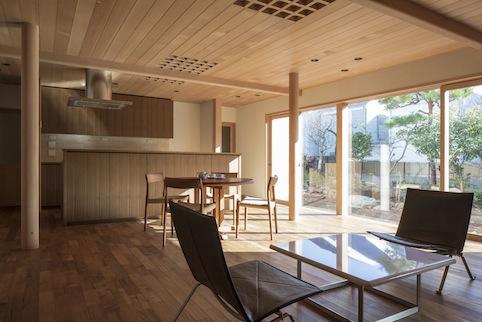 リビングダイニングから庭を臨む