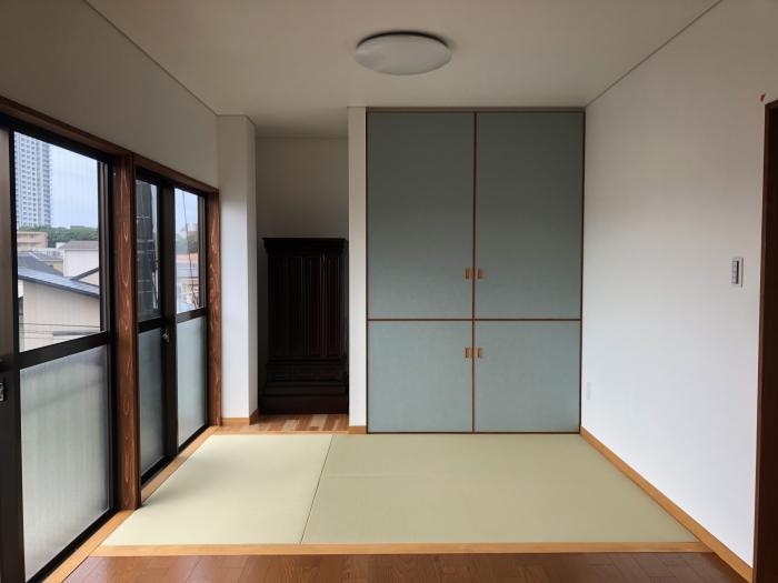 居室2。押入と仏壇置き場になっています。こちらはお父様のお好きな色で襖紙を決めています。