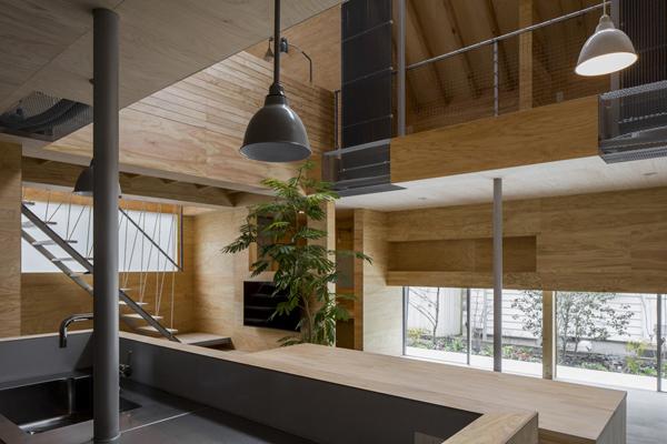これらを踏まえ、外出が難しい妹さんが屋内に居ながらも樹々の緑や青い空などの屋外的要素をあじわえ、元気な4姉妹が家中を走り回れる、余計な隔てのない工場のような家を提案しました。