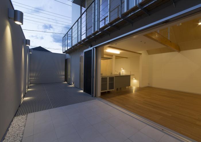 ルーフテラスに面するように主な開口部を設け、たっぷり自然光を取り込む階上のコートハウスを計画しました。