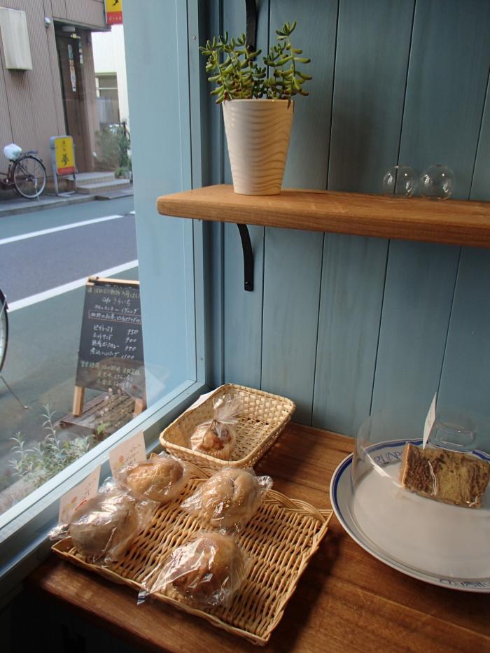 小さなパンコーナー。窓辺にレイアウトして、外からよく見えるように配慮しました。