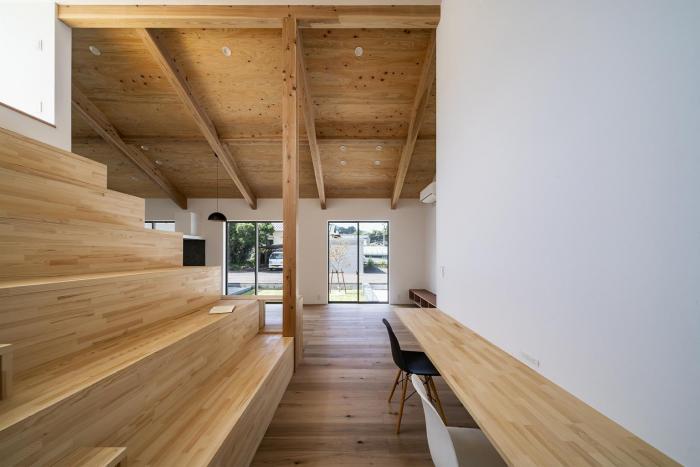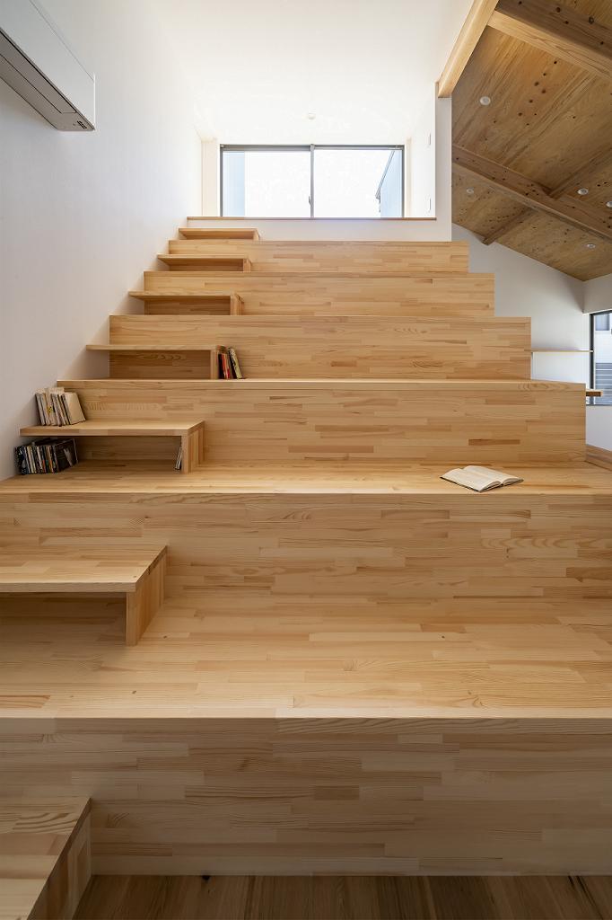 大きな階段は腰掛けし易い高さと奥行を確保