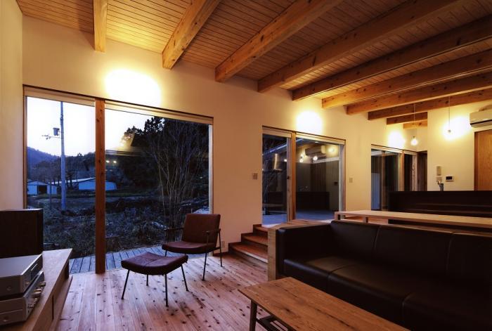 また、西側には杉林があり、西日を遮り室内からの借景になること、平屋で計画できる敷地であったことなどからこの場所を選びました。