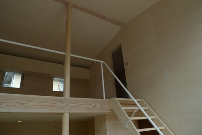 内装はシナ合板張り。木目のほとんど目立たないシナ合板は、シンプルで穏やかな空間を引き立てます