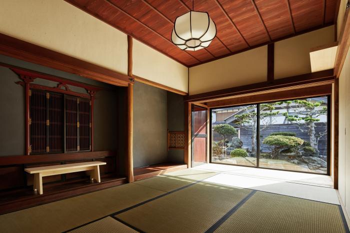 仏壇のある奥座敷。もともとは8畳でしたが6畳に詰めて、仏壇と床の間の美装改修を行いました。