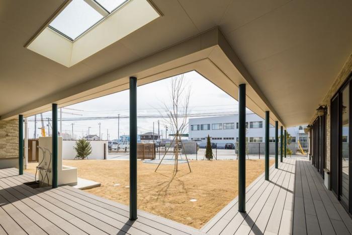 一部広めにとったところにはトップライトも設け、明るい半屋外空間にしつつ園児の集まる場所にしました。園児たちは園庭に元気に飛び出して遊んでいます。