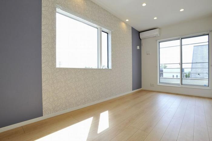 1階の洋室は落ち着いた雰囲気にでクロスを上下で貼り分けしました。
