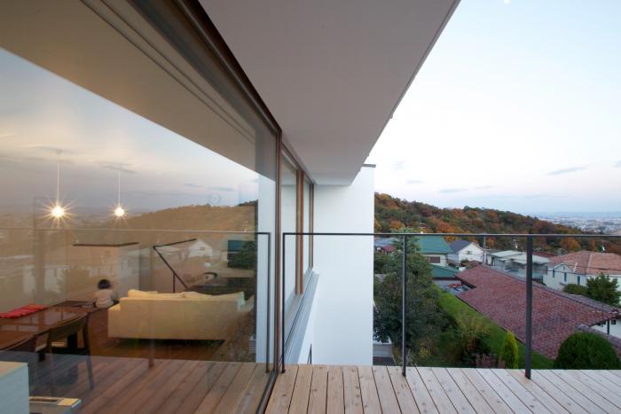 高台に計画された、本物件は周囲から視線を気にしないカーテンが要らないリビングを計画しました。