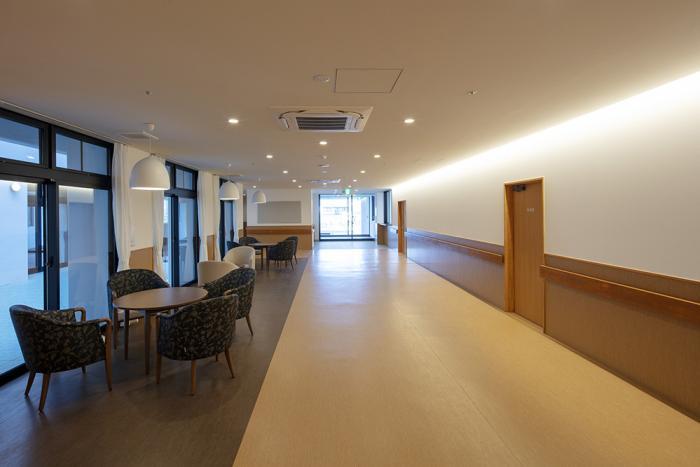 お施主様からは「非常に明るく開放的な空間で職員も入居者様も喜んでいる。現在はまだコロナ禍という事もありなかなか地域交流イベントはできていないが、将来的には施設の内外で地域交流の場を開放して、入居者様がさらに楽しくいきいきと生活できる施設にしていきたい」というお言葉をいただきました。