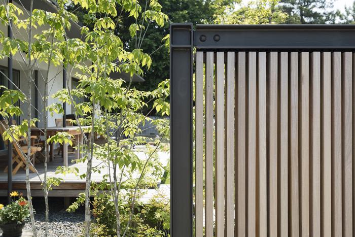 圧迫感を和らげ、長い接道面に変化を持たせました。