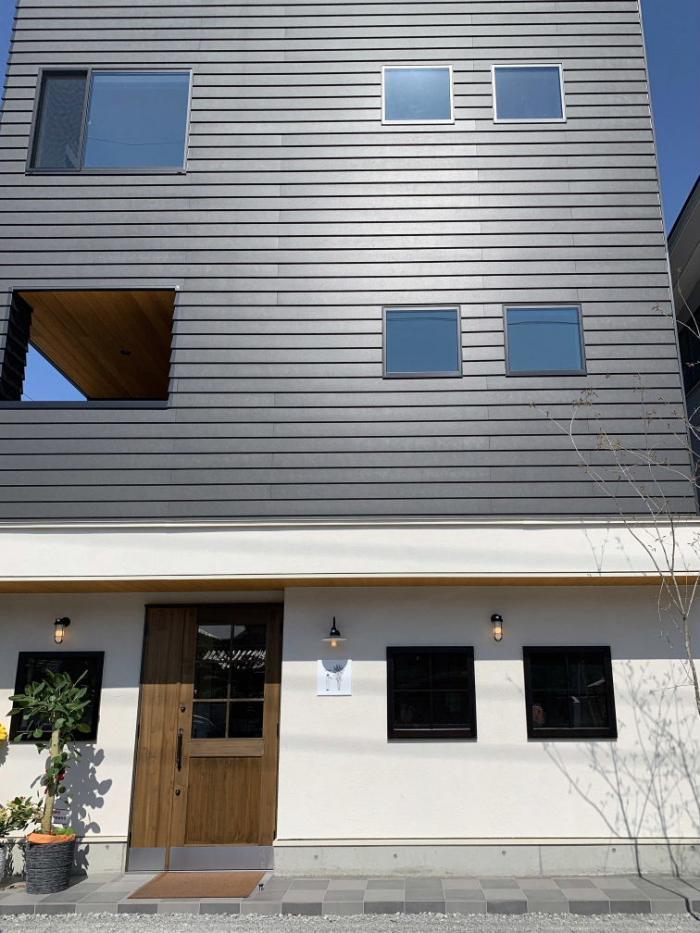 店舗併用住宅で、2階3階が住宅となりますが、住みやすさを確保した上でなるべく生活感が出来ない外観としたい。