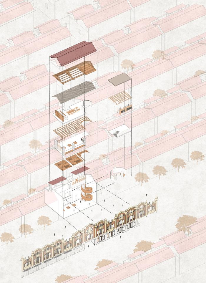 上海で最も開発が進んでいる淮海中路のエリアに1921年に建てられたスペインバロック様式の歴史建築物群が残っている。スポーツブランドのアシックスがここにフラッグショップを出店することになり、我々がコンペにより指名を受けた。大都市上海、中華民国時代の洋風建築物、日本発のスポーツブランド。多岐にわたる価値観が混ざり合う中で、普遍性を持ちうる力強い空間を作ることが我々の最大の目標であった。