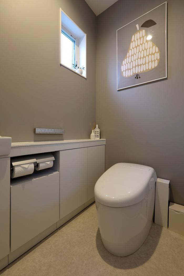 トイレ空間も統一感のあるシンプルモダンなアートが似合う空間に、用を足す場ではなく価値ある空間としての存在に