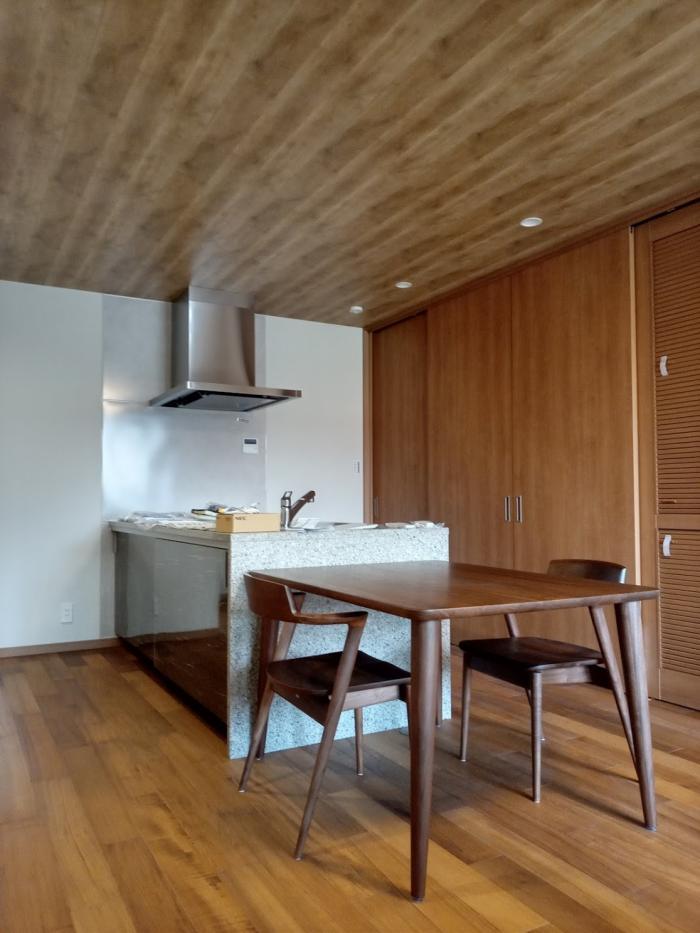 キッチンとダイニングをみています。