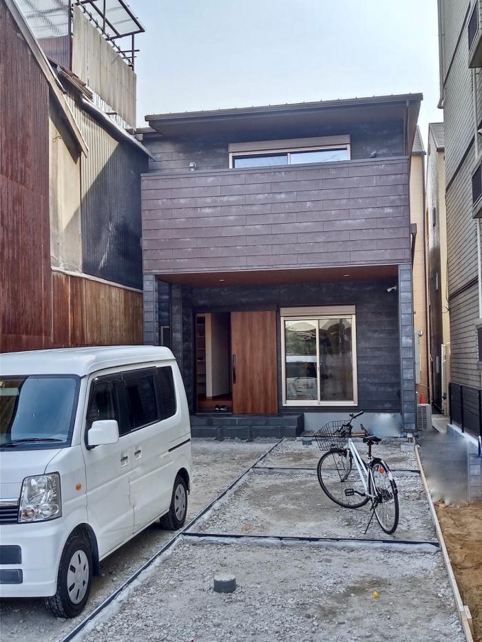 大阪市内住吉区での注文住宅の新築です。 大阪メトロおよび南海電鉄からのアクセスも良好な立地に土地を購入され、設計監理をご依頼いただきました。敷地は、路面電車が走る大通りから少し入った住宅街に位置し、大阪市内ではとても恵まれた環境です。敷地は奥に行くほどに広がった形状で、前面道路側にはクルマ2台の駐車スペースを確保することができます。住宅の構成は、木造2階建て。ここから、素敵な暮らしが始まります。