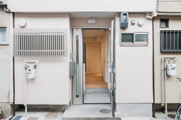 京都市の連棟長屋の中央に位置する住宅の改修プロジェクト。幹線道路から脇道、そして私道である小路を経て長屋の1室へと、どんどん細く狭くなっていく京都らしいスケール感の中に、開放的な「私の居場所」を小さくも実現することを目指しました。