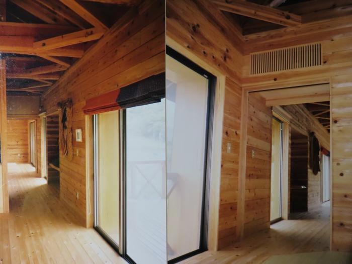 日頃の生活環境から脱出、あえて秋田杉の構造をむき出しにし荒々しさを表現。
