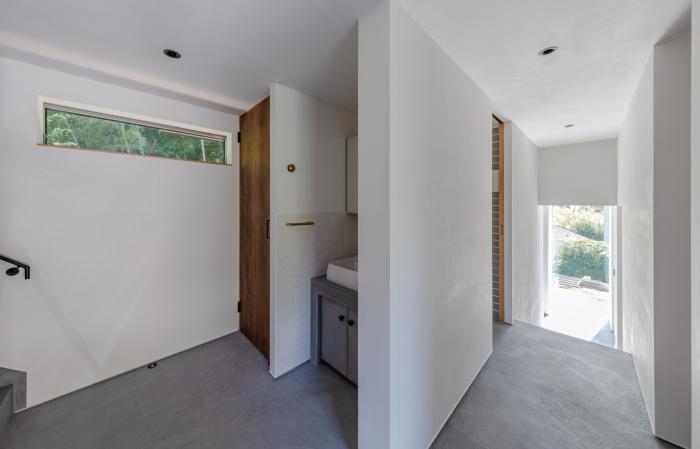 南からの気持ちの良い風、軒による夏の日射の遮蔽、左官仕上げの壁による室内の空気環境などにより、エアコンをできるだけ使わずに快適に過ごせています。