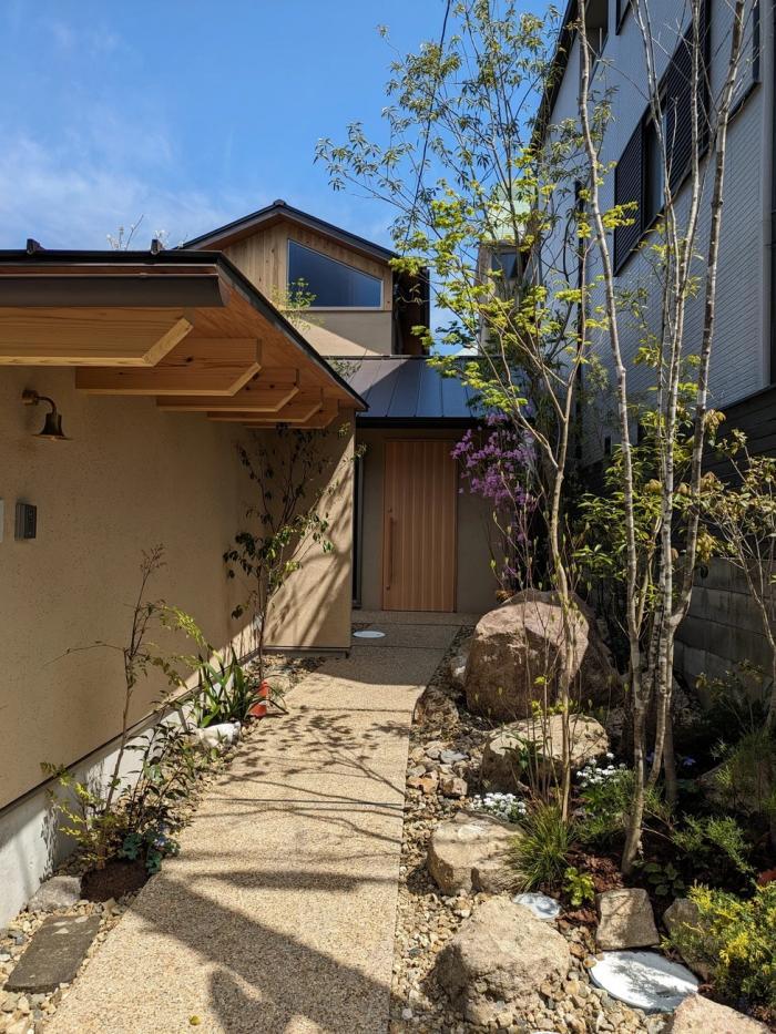 兵庫県西宮市の建て替えプロジェクトは、ミニマリストのデザイン要素と豊かな緑、居心地の良い中庭、クライアントの好みに共鳴する有機的な仕上げを調和させることを目的としていました。
