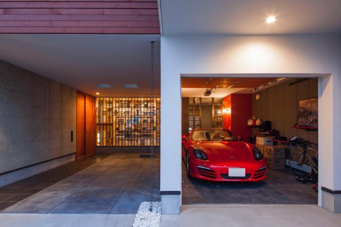 多摩市・聖蹟桜ヶ丘にある見晴らしのよい丘の上に建つガレージハウス。
