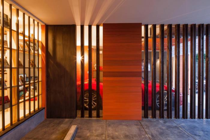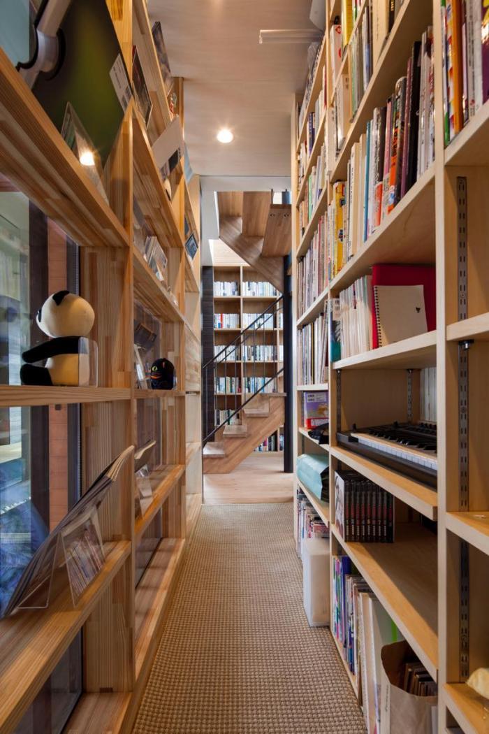 夫婦の職業が出版関係ということもあり、家族共通の書庫とそれぞれにひと部屋ずつ仕事場と趣味室も兼ねた書斎を持つ。 駐車スペースはオーバースライダー形式のガレージドアをもつビルトインガレージとデッキを屋根代わりとした玄関アプローチも兼ねたオープンエアなガレージの2カ所に加え来客用のスペースも設けた。 建物の内外に木をふんだんに使い、かつ単調にならないようアクセントとして一部を左官仕上や大谷石張りを採り入れた。 趣味のガーデニングが楽しめるようにし、目隠しも兼ねる植栽を予定しおり、ほどよく落ちついた雰囲気のなかにも地域のランドマーク的な存在となれば幸いである。