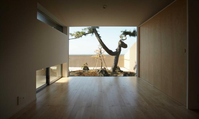 敷地に元から生えていた松をそのまま残し、窓からその姿を眺められるようにしました。