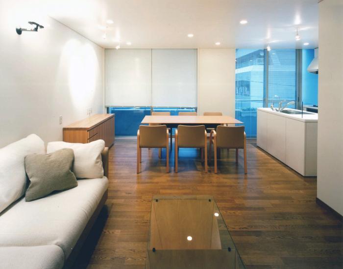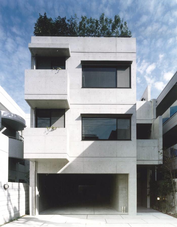 1992年に建てられた住宅の増改築。1992年当初は親世代と子世代の「同居」のための家であったが、今回の増改築では「同居」でもなく「2世帯住宅」でもない、その中間的な「2世‟代”住宅」を目指した。近年は核家族化により同居が好まれない傾向がある一方で、都心では2世帯住宅とするための十分な土地がない。この「2世‟代”住宅」では玄関や水廻りは分けつつもダイニングを共有することで、それぞれの生活スタイルやプライバシーを保ちながら互いの気配を感じることができる。さらに外部には性格の異なる2つの中庭があり、当初からあったコンクリート打ち放しの2階の中庭は子世代、新たに設けた緑豊かな1階の中庭は親世代の中庭となっている。これらの中庭は外階段で立体的につながり、ほどよい距離感の憩いの場所となっている。ものであふれ、そして核家族化が進む現代だからこそ、古くからある家を生かして世代を超えて住み継ぐことを大切にし、ライフスタイルの変化に合わせて柔軟に対応していける住宅を目指した。