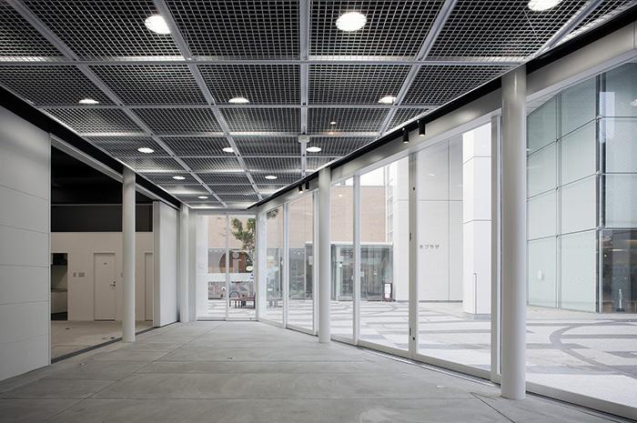 展示室では日常的にパネルやモニターによる展示・パンフレットの配布等を行っているが、この施設自身でイベントを行えるように、 プロムナードに対し、サッシを全解放できるようにした。展示室をステージに、プロムナードを客席に見立て様々なイベントが催せるよう計画した。