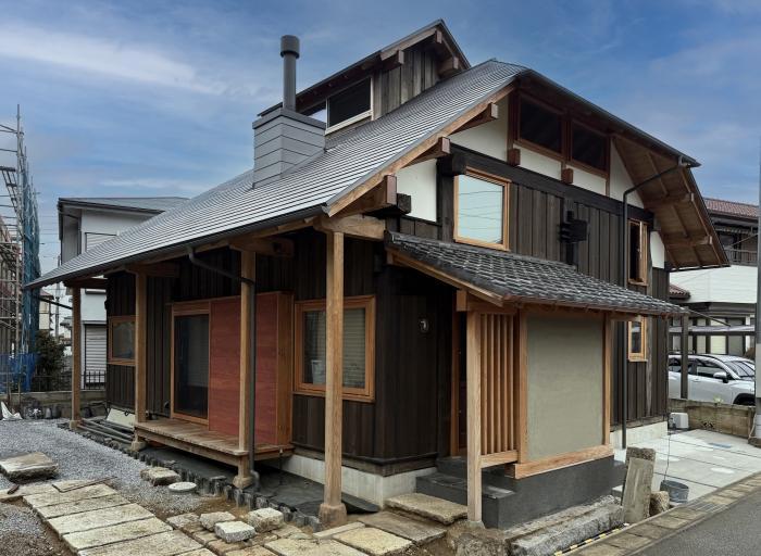 新潟に建てられた約120年前の古民家の構造材を譲り受けて新築した家です。