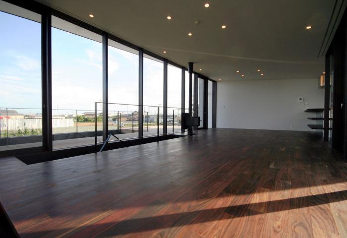 大地から一段持ち上げられた床は、周囲の風景をゆるやかに切り取り、