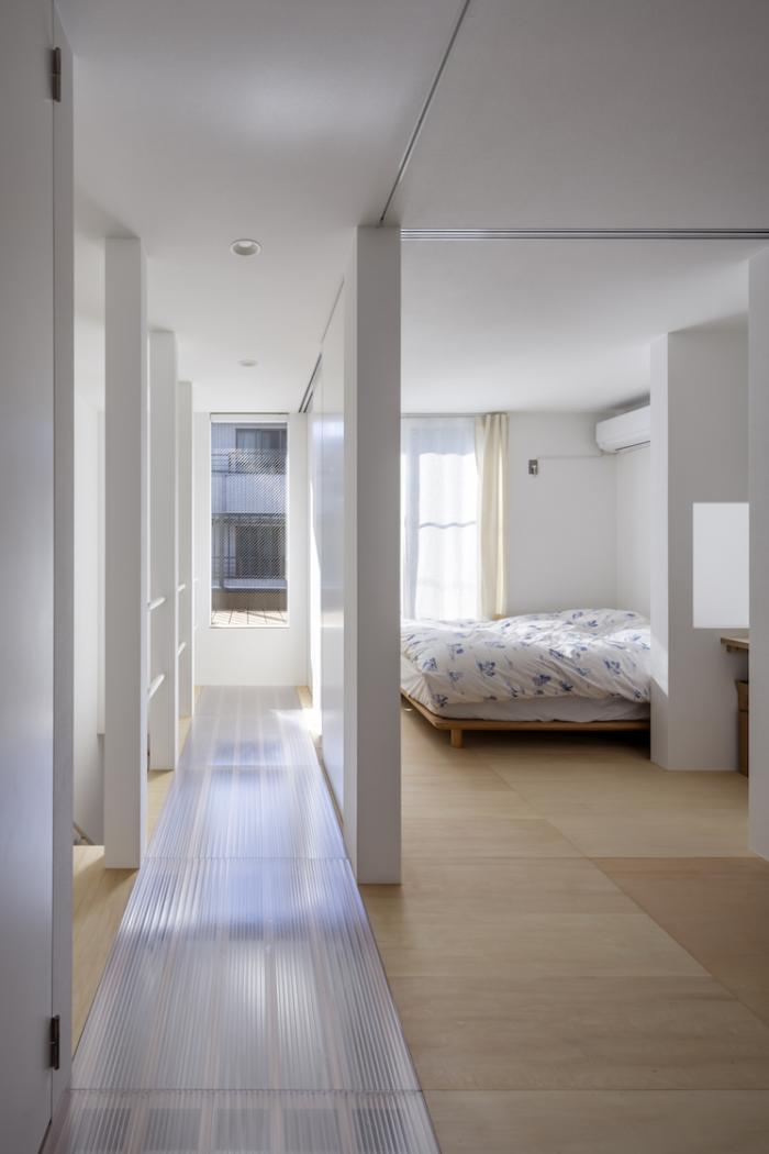 光と風の届く拠り所のあるワンルーム空間を、日々時々の営みに合わせて編集しながら住みこなしていく、光を編む家。そんな懐の深い住まいが実現した。