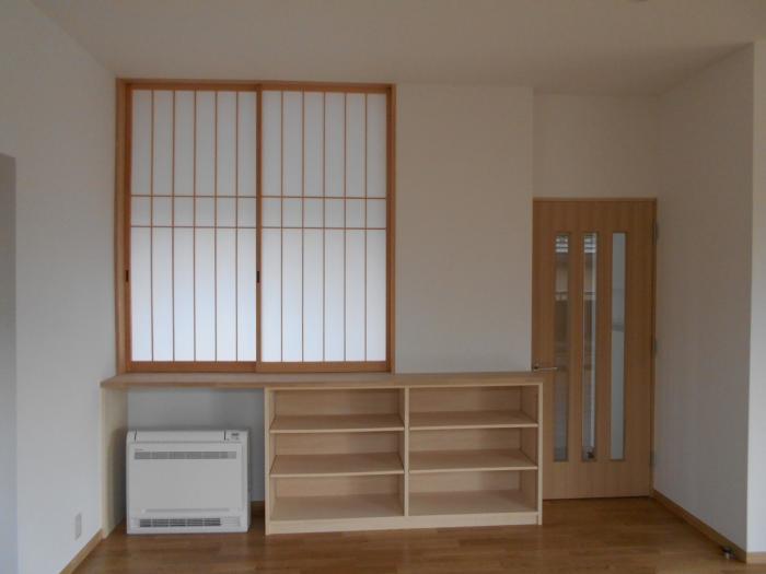 エアコンは床置きタイプとし、障子は2本共壁の位置に収納。又違った雰囲気が味わえる。