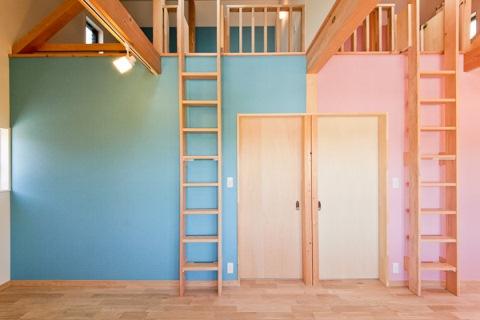 兄妹の部屋ですが、将来、分割できるようにしています。ロフトがあり、隠れ家のように寝ることができます。