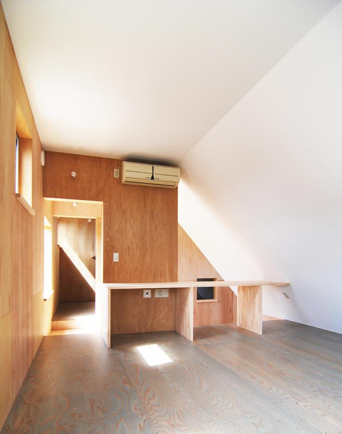 「ねぐら」は高さが1.2メートル程の広い押し入れのような空間で、家族の成長に合わせて様々な使い方ができるように用意しました。ある時は寝台車の寝台のようだったり、かくれんぼをするような遊び場だったり、静かに読書をする書斎だったり、また大容量の収納だったりもします。