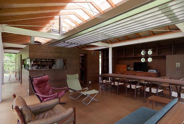 還暦を挟んだ夫婦と犬2匹が都心より移り住み、終の棲家として生活の全てが円滑に行なえるよう、又、眼前を流れる都幾川の清流や、秩父山系に連なる山々を背景に自然溢れる周囲環境の四季、移ろいをたっぷりと満喫できるよう、可能な限り既成概念に囚われる事無く開放的で、且つ、安全な空間を創出する事を心掛け、例えば、2階となる居住階では、全ての動線は回遊が出来るよう工夫され、所謂クルドサックが有りません。 更に、各機能エリアは出入口の扉も、天井仕上げさえも無く、直視線制御の機能を除いて(シャワーブースとWCのみ、防湿と防臭、遮音の為に透明な素材の天井を張って有ります)音と空気のプライバシーを犠牲にする代わり、「一つ屋根の下」での一体の温熱環境と十二分な光と気配を享受出来ます。