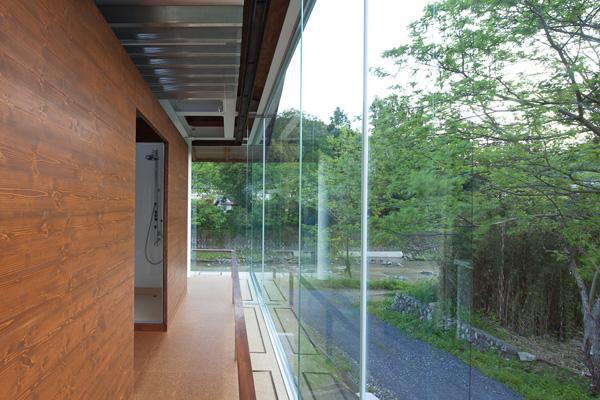 都心から50㎞圏、埼玉県北西部を流れる一級河川都幾川(ときがわ)の渓流沿い、北岸に接した約220坪の敷地(原野、田畑を含む)に建つハイブリッド構造(鉄+木+ガラス)のガラスハウスです。