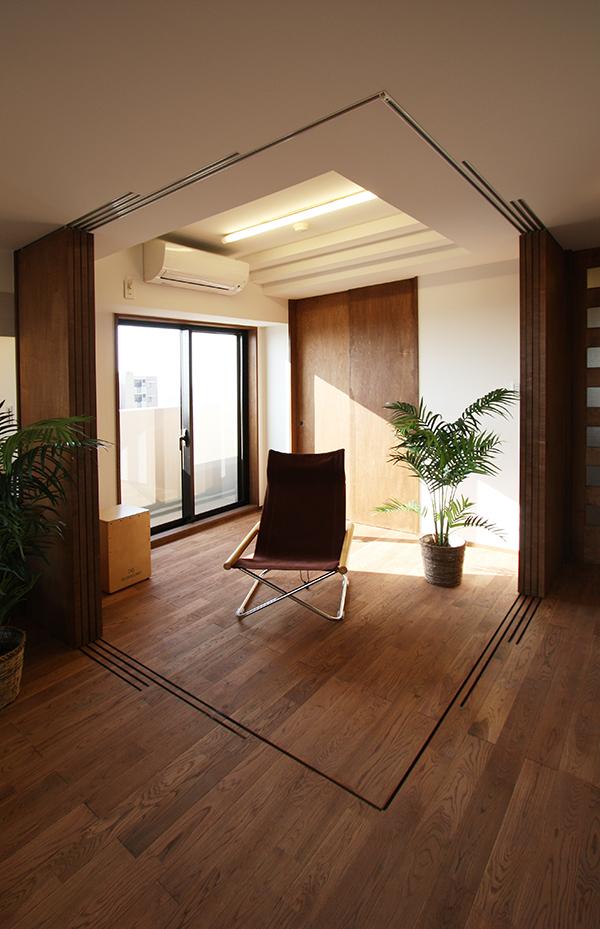 子供室は、当分は、居間の延長として使えるよう、間仕切を全て可動にして、広さをました。