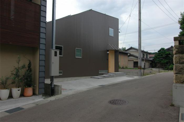 内部空間がそのまま建物のかたちになっています。外壁は耐候性がよく手入れの簡単なガルバリウム鋼板です。介助は必要ですが、段差を小さく抑えた階段で車いすでも一段づつのぼることができます。